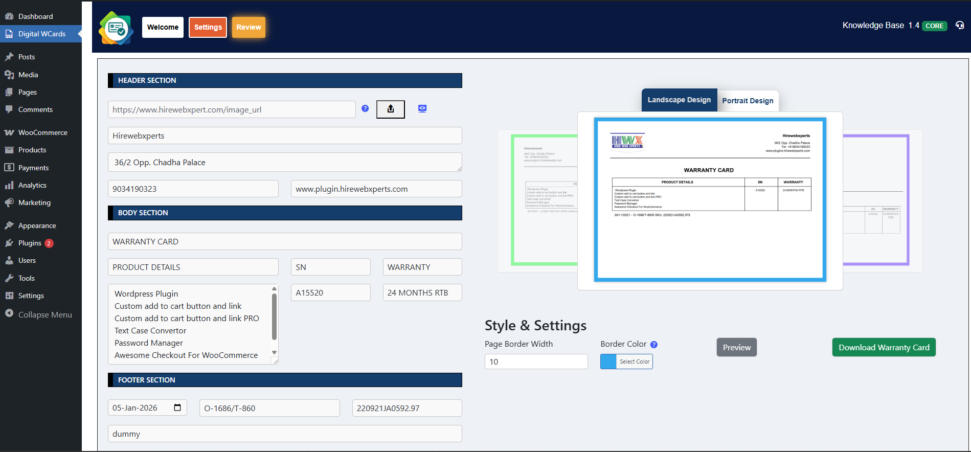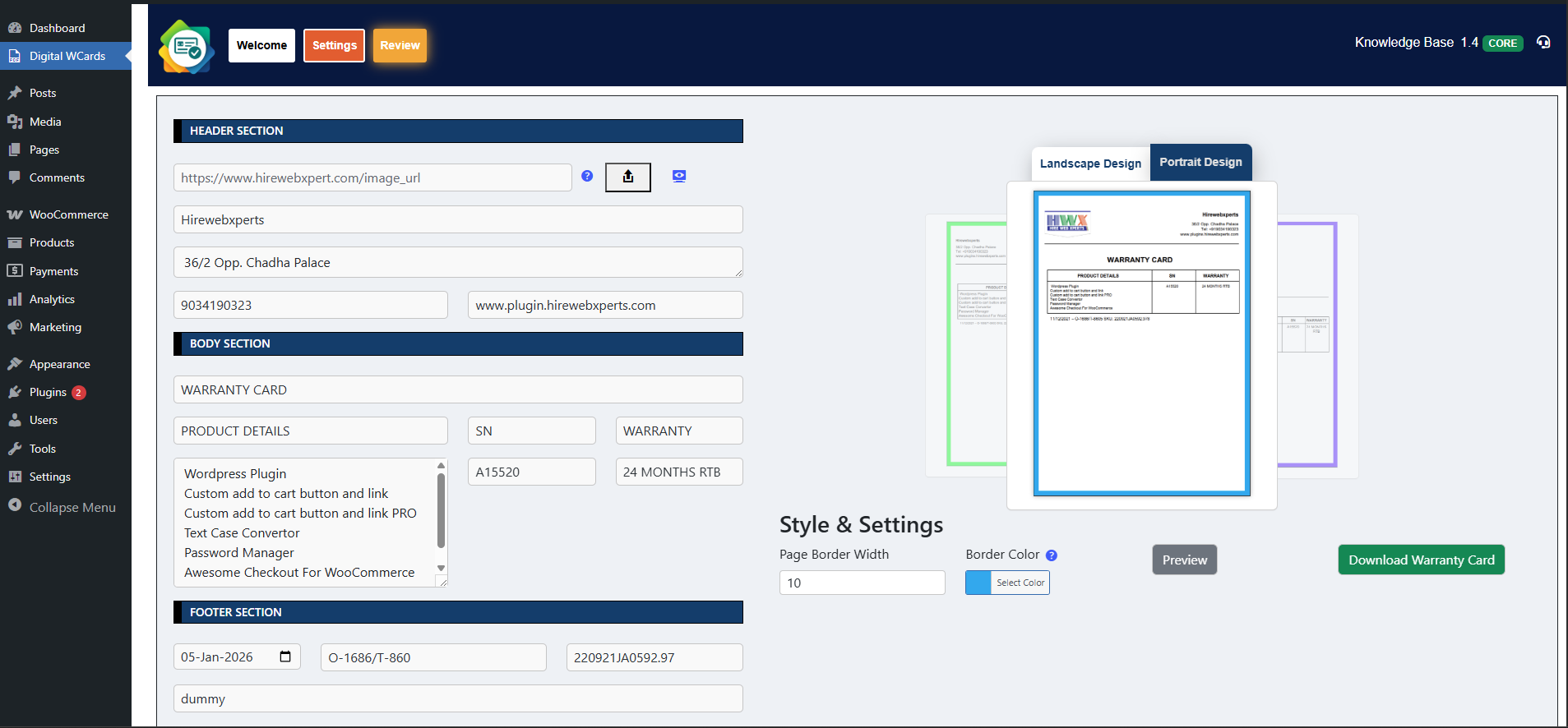 Digital Warranty Card Generator WordPress Plugin as the name suggests this Plugin can be used for generating Digital Warranty Cards for your Products. If you have an ecommerce website then you can provide your customer with such Digital Warranty Cards which not only boost your sales but also help you to earn more trust. You can also configure or change the settings to convert warranty cards to be used as Digital Gift Cards.
